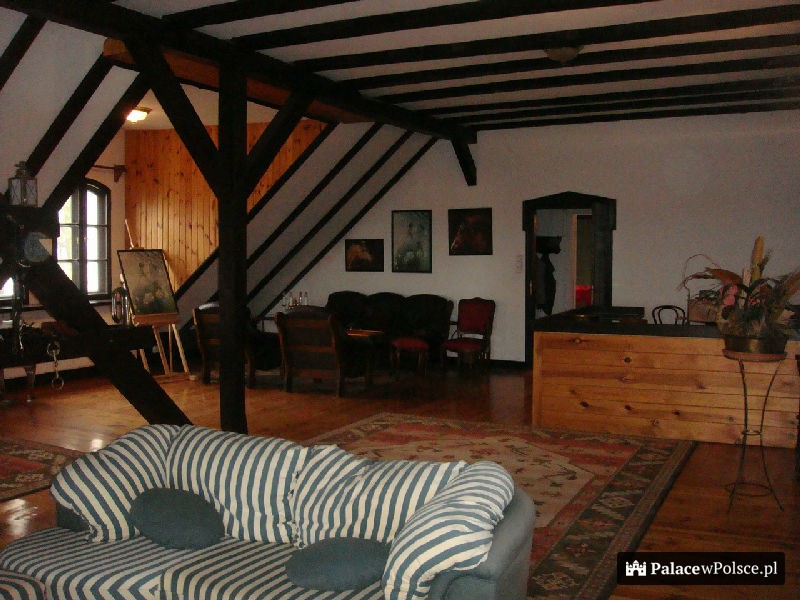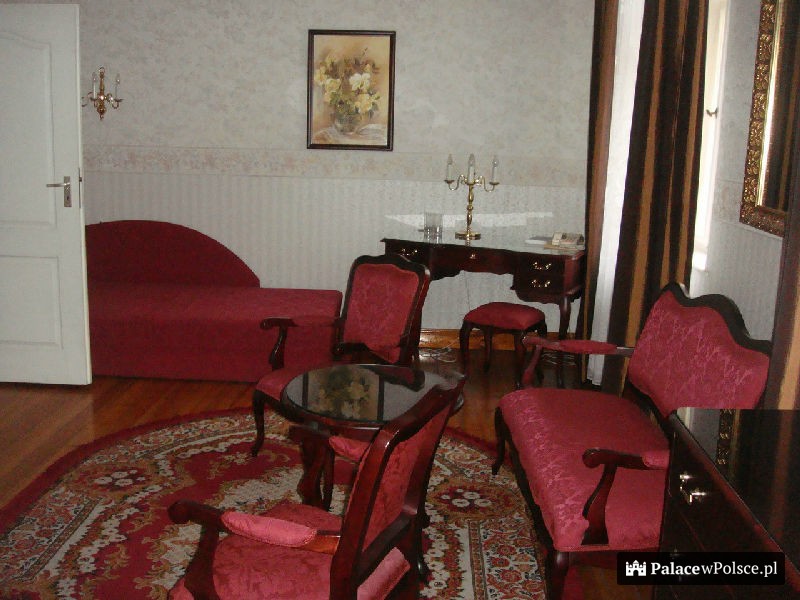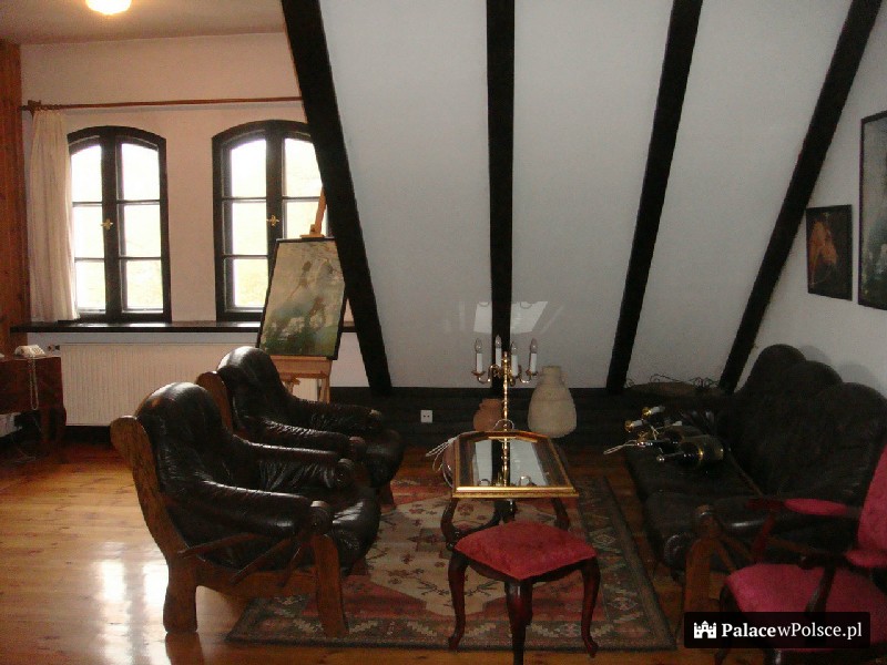 Rezydencja jest murowana z cegły i otynkowana, kryta dachem mansardowym pokrytym dachówką ceramiczną, na podłogach piękny parkiet, piękne drewniane schody, łazienki płytki, okna drewniane , przeprowadzony kapitalny remont w 1996 roku, dach remontowany w 2003 roku.