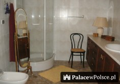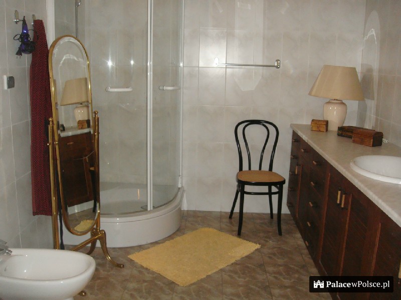 Na I piętrze 5 pokoi z łazienkami i dwa dwupokojowe apartamenty z łazienkami .