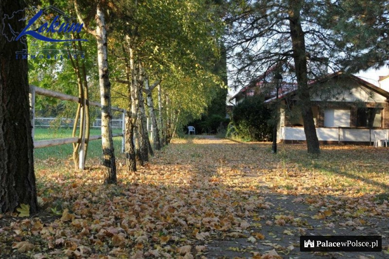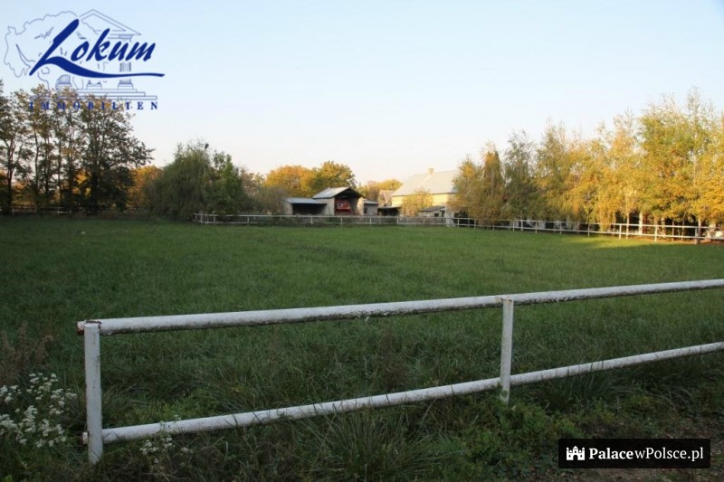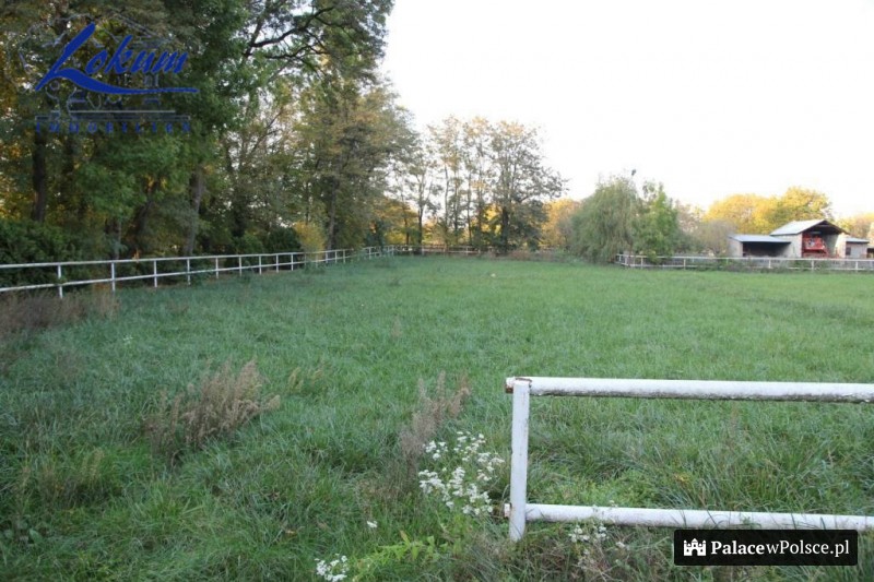 Nieruchomość zabudowana jeszcze domkiem parterowym o pow. około 90 m2, w którym są 3 pokoje kuchnia, łazienka i przedpokój , stajnią z 19 boksami dla koni ((z dużym wybiegiem dla koni) , budynkiem parterowym mieszkalno - gospodarczym o pow. około 60 m2 oraz portiernią , staw.